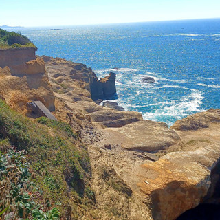 Mike and I are meandering along the Oregon coast and we really wanted to see the Devil's Punch Bowl. It's very cool because water from the ocean dishes into a hollow rock formation shaped like a huge punch bowl. The surf churns, foams, and swirls as it mixes a beautiful brew.