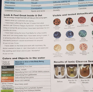 The Gerson Institute has this protocol that I will use at the clinic, however Mike and I both got to use the Ion Foot Detox early, because my friend had one. Yay! This is a professional detoxification treatment, to help with total body purification and enables the body to heal itself. This foot bath relaxes, cleanses, balances and enhances the bio energy of the body.