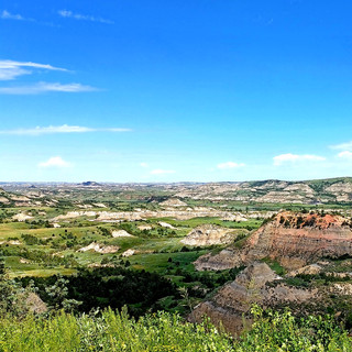 April 7, 1903, President Theodore Roosevelt, who had visited and invested in ranches in the area in the 1880s, visited Medora on a presidential tour of the Western United States. Most of the Badlands' residents turned out to greet him on his whistle stop. Roosevelt later recalled that "The entire population of the Badlands, down to the smallest baby, had gathered to meet me… They all felt I was their man". The Theodore Roosevelt National Park is located all around Medora and is spectacular.