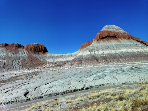 In The Painted Desert National Park, the Blue Mesa Road, offers spectacular viewpoints that feature overlooks with panoramic views, all located less than 2 miles north of the Painted Desert Visitor Center. There are no camping facilities or overnight parking allowed in the park.