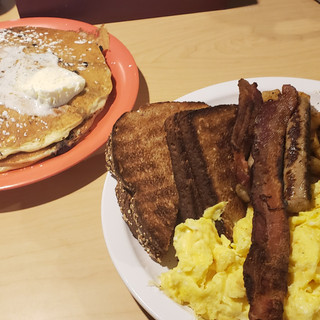 Our friends Randi and Doan recommended this place so we had to check it out while in Manchester. It was very good and fast. I had the macadamia nut coffee, orange juice, and the hungry hiker with blueberry pancakes and Mike had the ham and cheese omelette. Yummmm!